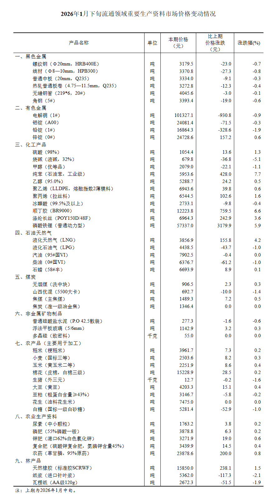 據(jù)對(duì)全國(guó)流通領(lǐng)域9大類50種重要生產(chǎn)資料市場(chǎng)價(jià)格的監(jiān)測(cè)顯示,2026年1月下旬與1月中旬相比,25種產(chǎn)品價(jià)格上漲,21種下降,4種持平。