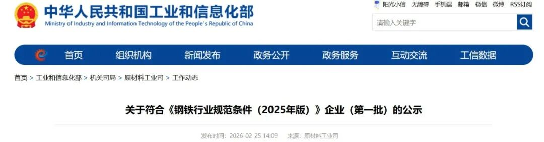 工信部發(fā)布關(guān)于符合《鋼鐵行業(yè)規(guī)范條件(2025年版)》企業(yè)(第一批)的公示