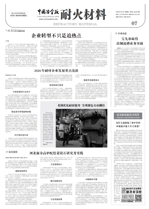 在鋼鐵行業(yè)減量調(diào)整、耐材市場(chǎng)量?jī)r(jià)齊跌的背景下,2026年作為“十五五”規(guī)劃開(kāi)局之年,已成為耐材企業(yè)轉(zhuǎn)型突圍的關(guān)鍵窗口。北京利爾、中鋼洛耐、瑞泰科技、山東耐材、江蘇寶宜瑞、金隅通達(dá)等企業(yè)在2026年初密集召開(kāi)年度工作會(huì)議,其部署既呈現(xiàn)了行業(yè)發(fā)展的共性邏輯,又彰顯具體現(xiàn)狀及其特色,折射出中國(guó)耐材產(chǎn)業(yè)邁向高質(zhì)量發(fā)展的集體自覺(jué)。