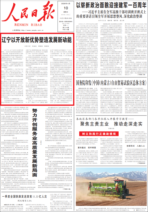 2026年4月10日,人民日報(bào)頭版頭條刊發(fā)《遼寧以開放新優(yōu)勢塑造發(fā)展新動(dòng)能》,全文如下: